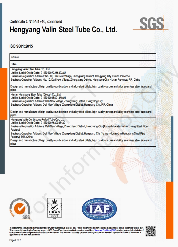 Sales Head Office:+0086 734 8875516 E-mail: hysteel@hysteeltube.com
