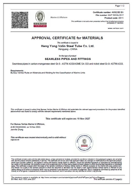 11月底,衡鋼順利收到了法國船級社(簡稱BV)總部簽發的Gr6低溫海工管認證證書。此次認證歷時兩年,是衡鋼首次全組距全交付狀態的單一鋼級船級社擴證。 法國船級社是國際船級社協會12個正式成員之一,屬世界領先的檢驗認證集團。本次獲證有利于衡鋼進一步開拓低溫管線管品種深海市場,建立領先國內同行的優...
