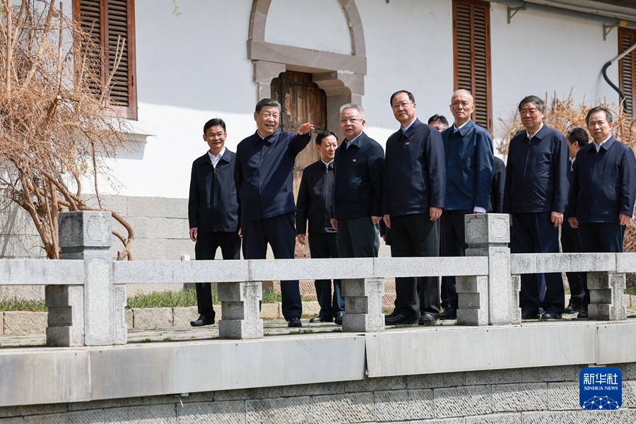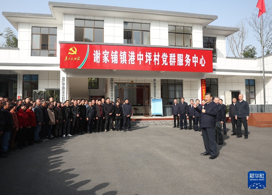 3月18日至21日,中共中央總書記、國家主席、中央軍委主席習近平在湖南考察。這是19日下午,習近平在常德市鼎城區謝家鋪鎮港中坪村考察。新華社記者 燕雁 攝