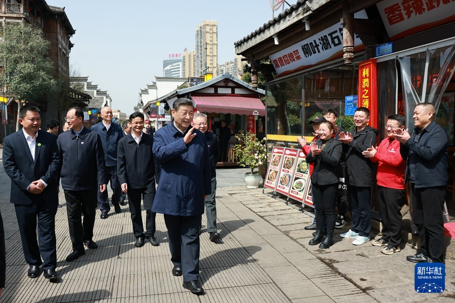 3月18日至21日,中共中央總書記、國家主席、中央軍委主席習近平在湖南考察。這是19日上午,習近平在常德河街考察。新華社記者 鞠鵬 攝