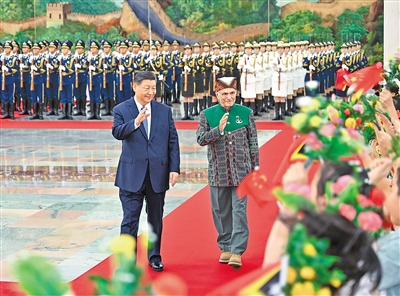 會談前,習近平在人民大會堂北大廳為奧爾塔舉行歡迎儀式。